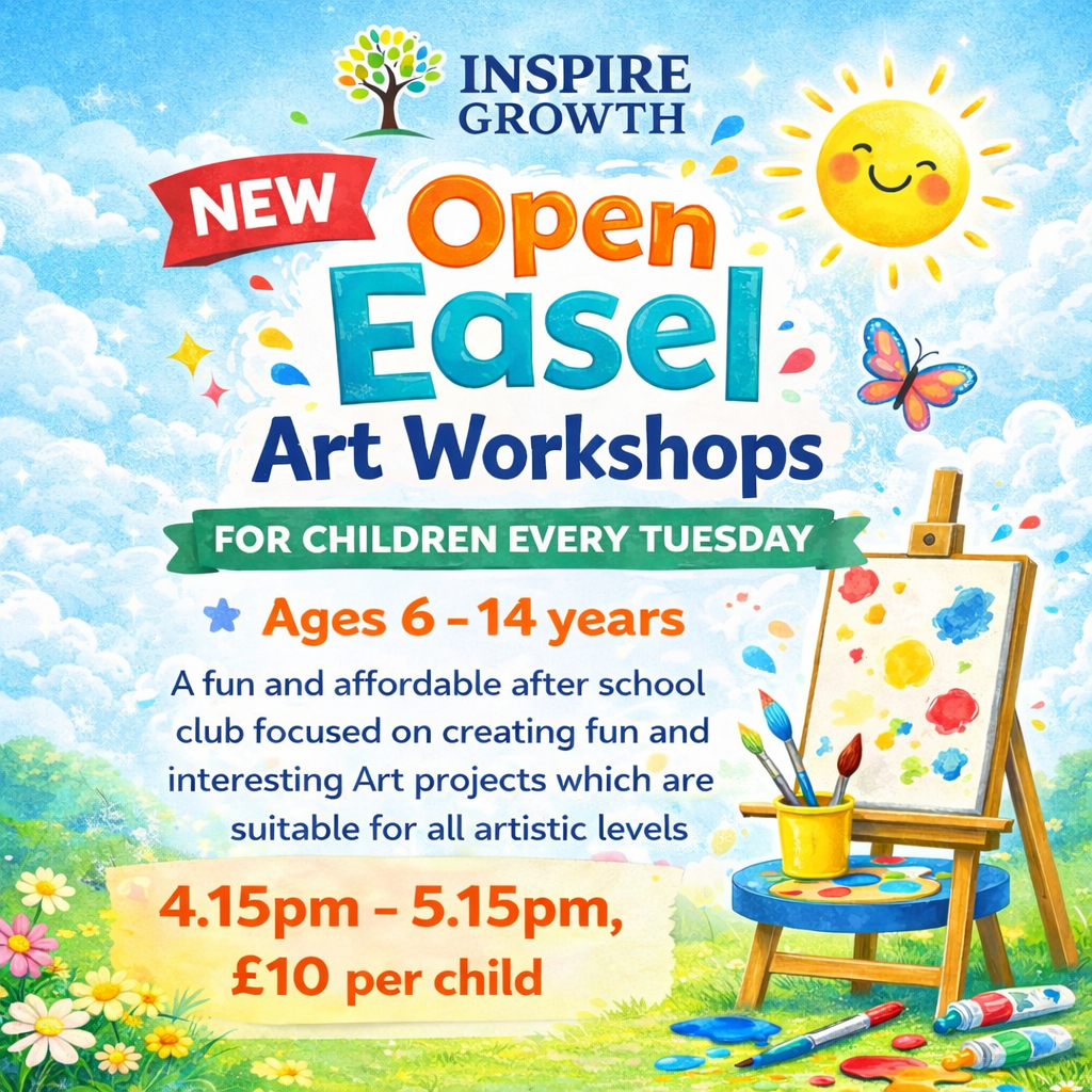 Come and join Inspire Growth’s ‘Open Easel’ Art Club — a relaxed, creative space where children can explore art, try new techniques and enjoy making something they’re proud of.
